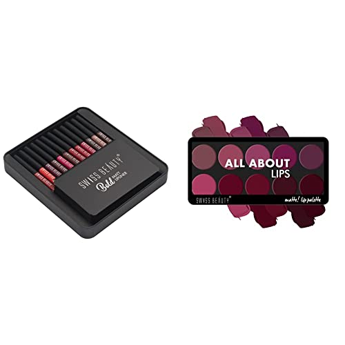 Swiss Beauty Bold Matte Lipliner Pencil Set | Long Stay | Smudge Free | Waterproof | Creamy Lip Liner Pencil| Multi Color (1.6g x12) Pack Of 12The product comes in safe package. The product will be an excellent pick for you.Swiss Beauty All about Lip Palette with 10 Pigmented colors |Creamy Matte Finish Lip Colors Lipstick |Travel Friendly Lip Palette | Multicolor -01 12 gm |The product comes in safe package. The product will be an excellent pick for you.