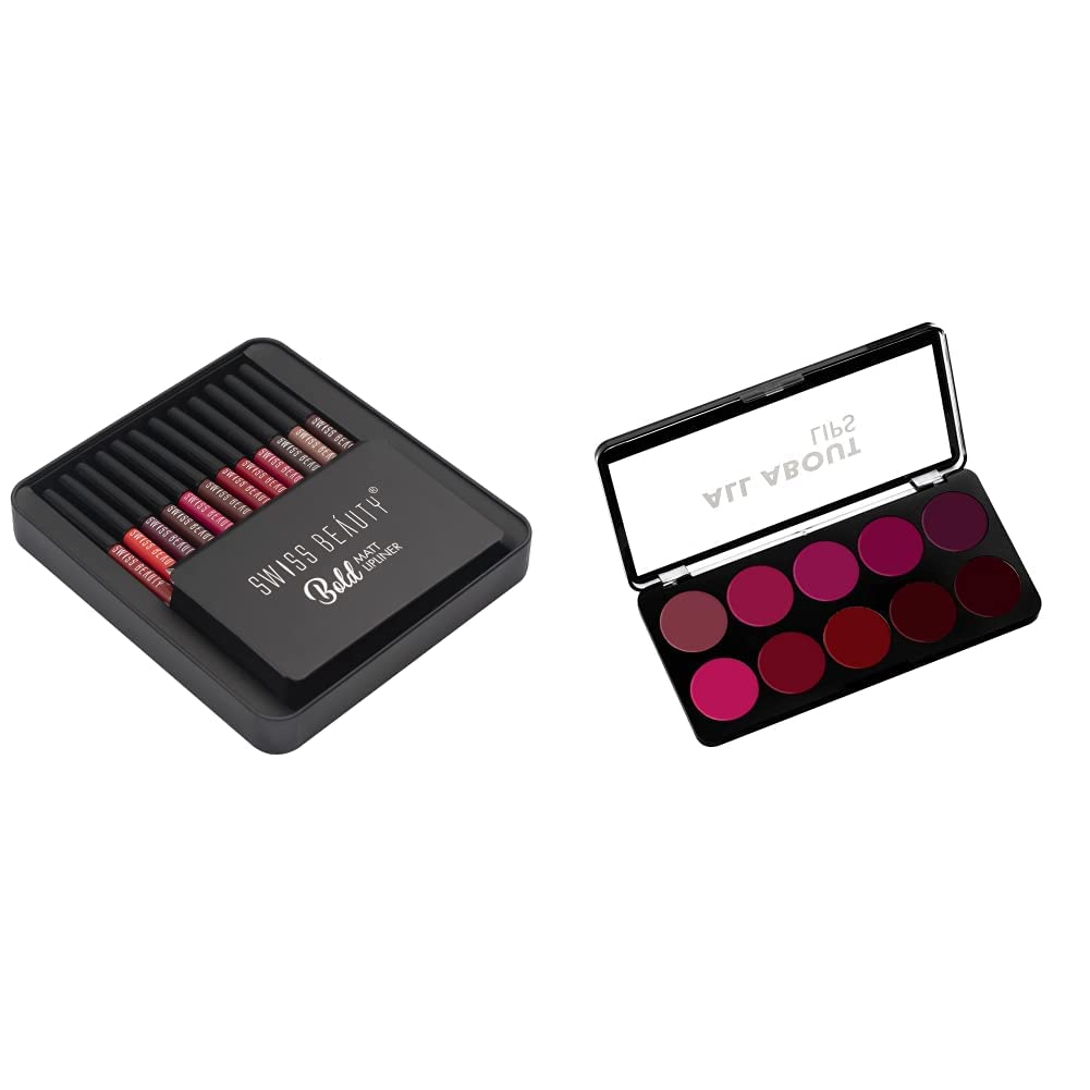 Swiss Beauty Bold Matte Lipliner Pencil Set | Long Stay | Smudge Free | Waterproof | Creamy Lip Liner Pencil| Multi Color (1.6g x12) Pack Of 12The product comes in safe package. The product will be an excellent pick for you.Swiss Beauty All about Lip Palette with 10 Pigmented colors |Creamy Matte Finish Lip Colors Lipstick |Travel Friendly Lip Palette | Multicolor-02 12 gm |The product comes in safe package. The product will be an excellent pick for you.