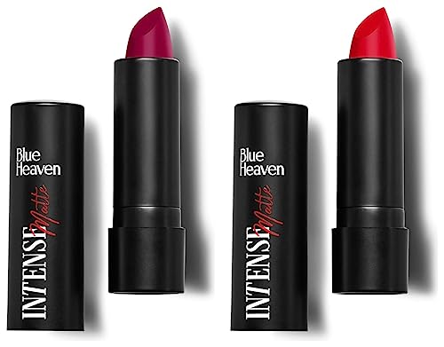 Blue Heaven Intense Matte Lipstick Ruby Red 311 14 gmThe all new walkfree matte lipsticks from the house of Blue Heaven offers intense matte finish that is just perfect to brighten up any occasion. The unique formulation keeps your lips fresh for up to 8 hours. From dreamy pinks to subtle browns from gorgeous plum to vibrant orange; the 12 shade palatte is thoughtfully created to compliment every look. The deeply pigmented texture is smooth and infused with moisture that offers fresh look for a longer duration. Get ready to fall in love with your lips all over again.Blue Heaven Intense Matte Lipstick Aged Wine 308 4 gmThe all new walkfree matte lipsticks from the house of Blue Heaven offers intense matte finish that is just perfect to brighten up any occasion. The unique formulation keeps your lips fresh for up to 8 hours. From dreamy pinks to subtle browns from gorgeous plum to vibrant orange; the 12 shade palatte is thoughtfully created to compliment every look. The deeply pigmented texture is smooth and infused with moisture that offers fresh look for a longer duration. Get ready to fall in love with your lips all over again.