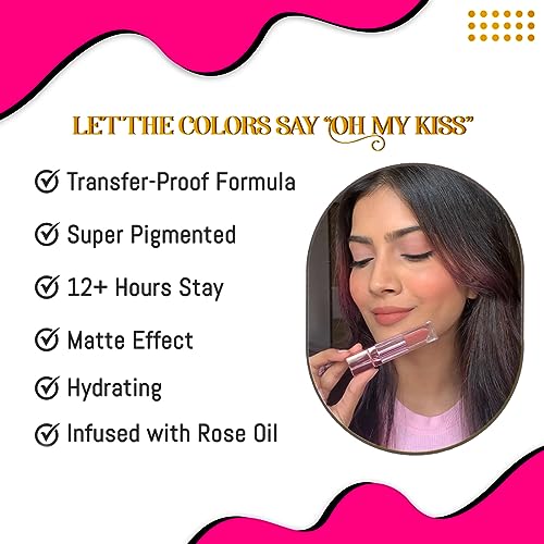 The Oh My Kiss Non-Transfer Liquid Lip Color is a hero product of the Roseate range. The formula has an ultimate matte effect and is 100% transfer-proof smudge-proof and water-proof. The Lip Color has a 12+ hours long-lasting finish and sits on your lips bright & fresh all day long. Infused with the goodness of Rose Oil it does not make the lips dry or chappy. Your lips remain hydrated and soothed all day long.