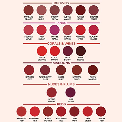 Faces Canada brings to you the intricately designed Faces Canada Weightless Matte Lipstick that gives you one stroke intense color with a weightless comfort. The Faces Canada Matte lipstick comes in 30 stunning shades to suit every occasion on your calendar at affordable prices! The Weightless Matte Lipstick gives you a plush and plump lip from a single stroke only with the rich colour and matte look you all have been dreaming of. It is formulated with ultra light-weight pigments and rich colour that effortlessly glides on your lips without putting any burden on your soft and sensitive lips. The Faces Canada Weightless Lipstick is also infused with carefully picked ingredients like jojoba oil almond oil and Vitamin-E to keep your lips soft and moisturised throughout the day while maintaining the flawless matte pout.
