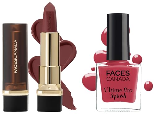 FACESCANADA Comfy Matte Creme Lipstick - Oh So Serious 11, 4.2G|8Hr Long Stay|Creamy Matte & Faces Canada Ultime Pro Splash Nail Enamel - Cherry Red 110 (8Ml)|Quick Drying