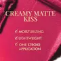 Highly pigmented colour and a lightweight moisturizing formula come together in our Creamy Matte Kiss Bullet Lipsticks. It is so comfortable on the lips its like finding the perfect pair of jeans - flattering comfy & goes with everything! Infused with Cocoa Butter Vitamin E and Caffeine this moisture bomb glides smoother than a swipe on your phone screen and keeps your lips moisturized and soft all day long. Caffeine also prevents pigmentation. Available in 9 versatile shades ranging from nudes reds and browns it is made to flatter all Indian skin tones.