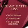 Highly pigmented colour and a lightweight moisturizing formula come together in our Creamy Matte Kiss Bullet Lipsticks. It is so comfortable on the lips its like finding the perfect pair of jeans - flattering comfy & goes with everything! Infused with Cocoa Butter Vitamin E and Caffeine this moisture bomb glides smoother than a swipe on your phone screen and keeps your lips moisturized and soft all day long. Caffeine also prevents pigmentation. Available in 9 versatile shades ranging from nudes reds and browns it is made to flatter all Indian skin tones.