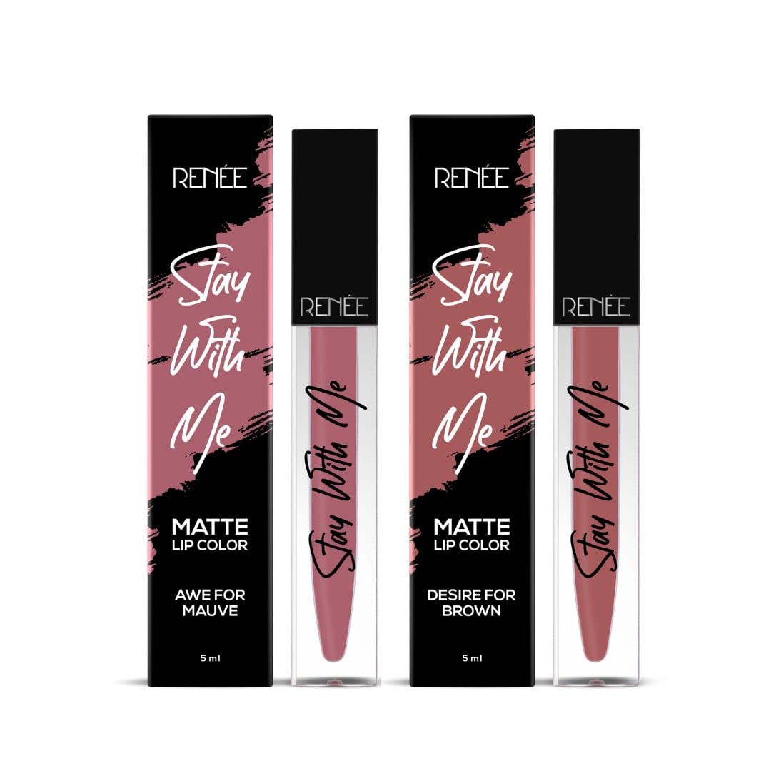 STAY WITH ME ALL DAY LONG! RENEE Stay With Me Matte Liquid Lip Color collection is an exceptional selection of swoon-worthy shades. From rich and regal to pretty and charming the collection has hues to go with all your outfits and occasions. Make your presence felt with these matte-licious shades wherever you go for everyone's sure to follow. Enriched with Shea Butter and Vitamin E your lips are always moisturized with a range of rich and highly pigmented vibrant to subtle hues all day long! Along with all the color pop this collection is totally smudge-proof water-proof and transfer-proof composed with vegan and cruelty free ingredients to make your lips look supple and sexy with the smoothest consistent application. Be ready for the range of wishful emotions that are going to come your way when you slay it in these shades of RENEE!