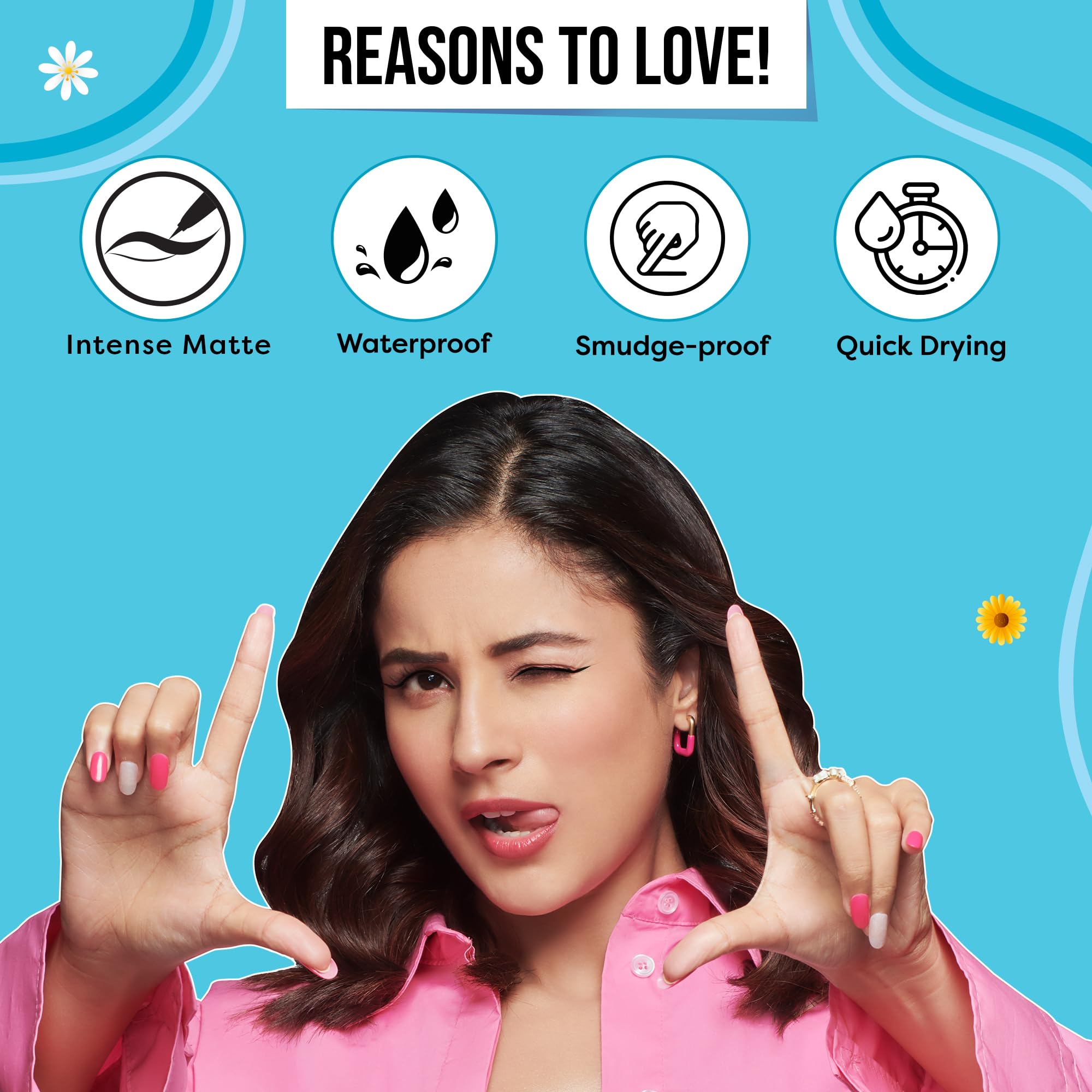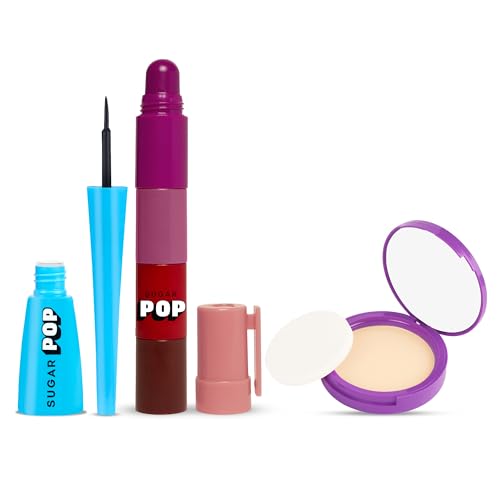 Matte Eyeliner: A super pigmented matte liquid eyeliner that delivers intense smudge-proof and highly precise lines that last long. The easy-to-use felt-tip glides on smoothly and helps you create the sharpest of looks with ease. 4 in 1 Lip Twist: Twist. Swipe. Slay Lipstick lovers pay close attention! With SUGAR POP 4 in 1 Lip Twist you can have it all! This unique packaging houses 4 stunning lippies to choose from and flaunt your pout anytime anywhere. From subtle nudes to bold hues this stackable lipstick has versatile shades to suit all skin tones. What's more? Infused with hyaluronic acid shea butter and jojoba oil goodness these lightweight lipsticks keep your lips soft and smooth. The satin matte texture glides on smoothly and offers full coverage in just one swipe. Be desk to dinner ready in a jiffy because this multi-purpose genius can be used as a blush or an eyeshadow. Just stack this in your bag for all your on-the-go beauty needs! Compact: The SUGAR POP Longwear Compact boasts of an ultra-lightweight formula that offers medium coverage minimizes pores and sets your base makeup in place! Enriched with vitamin E this compact powder keeps skin shine-free fresh and flawless all day long.