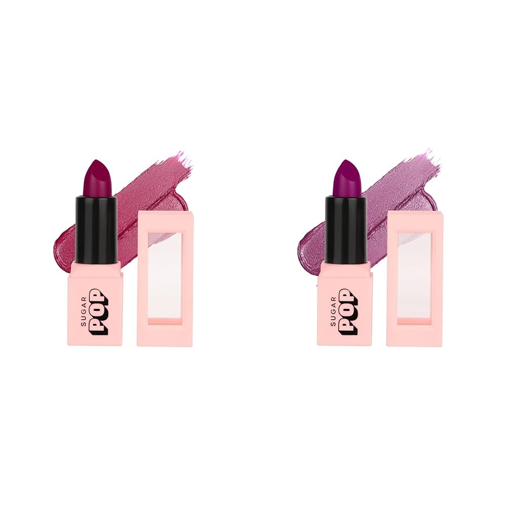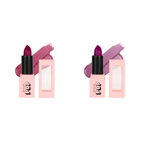 SUGAR POP Satin Matte Lipstick - 03 Tulip (Rosy Pink) - 3 gm - Infused with Vitamin E & SUGAR POP Satin Matte Lipstick - 04 Orchid (Light Purple) - 3 gm - Infused with Vitamin E