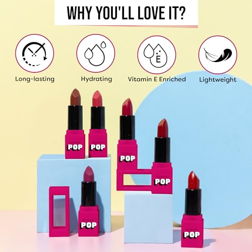 • SUGAR POP Satin Matte Lipstick is a full coverage long lasting lipstick that delivers vivid colour and ample moisture in one single swipe