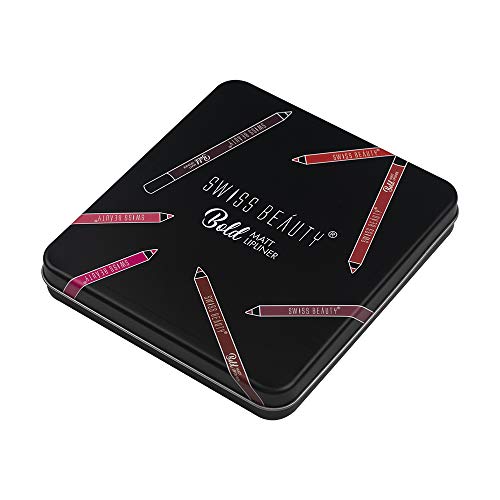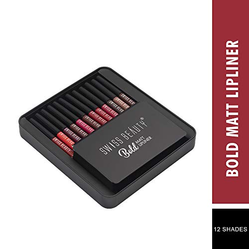 Swiss Beauty Bold Matte Lipliner Pencil, 12 Multi Color, (1.8g) Pack of 12 + Swiss Beauty glitter Color Changegel Lipstick, Red-03, 3g