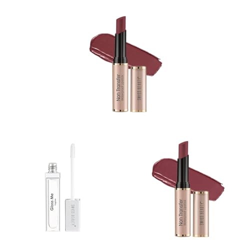 Swiss Beauty Non-Transfer Waterproof Lipstick with Jojoba Seed Oil | Matte Finish | Long-Lasting | Highly Pigmented | Shade- Mauve Taupe 3gmThe matte long-lasting texture gives you pout-worthy lips in one stroke. It effortlessly on your lips giving you a gorgeous soft matte finish. Plush pigment-rich formula | intense colour pay-off | smooth textured stroke application | luxurious effortless glide | soft matte finish.Swiss Beauty Gloss Me Lip Gloss | Lightweight | Glossy Finish | Non-sticky |With Jojoba Oil & Glycerine | 8gmIf you want to know how these glosses feel on the lips the clue is in the name. But while its softer than butter its not sticky or gloopy in the bargain. The lightweight formula allows you to wear it alone or on top of a matte lipstick to make it feel less drying. Plus the colossal shade range will make any beauty addict feel like a kid in a cosmetic candy shop.Swiss Beauty Non-Transfer Waterproof Lipstick with Jojoba Seed Oil | Matte Finish | Long-Lasting | Highly Pigmented | Shade- Rusty Nude 3gmThe matte long-lasting texture gives you pout-worthy lips in one stroke. It effortlessly on your lips giving you a gorgeous soft matte finish. Plush pigment-rich formula | intense colour pay-off | smooth textured stroke application | luxurious effortless glide | soft matte finish.