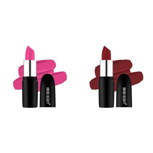 Swiss Beauty Pure Matte Lipstick | Long Lasting Hydrating & Lightweight Lipstick | Lush Pink 3.8gm|Swiss Beauty pure matte lipstick gives a matte finish on your lips. Exquisitely smoothing. It's like a colour infused fountain of youth for your lips. Instantly drenches lips in perfect locks it in for endless comfort. Infused with advance skin care ingredients the formula appeared in fine lines and helps lips look fuller.Swiss Beauty Pure Matte Lipstick | Long Lasting Hydrating & Lightweight Lipstick | Hot Red 3.8gm|Swiss Beauty pure matte lipstick gives a matte finish on your lips. Exquisitely smoothing. It's like a colour infused fountain of youth for your lips. Instantly drenches lips in perfect locks it in for endless comfort. Infused with advance skin care ingredients the formula appeared in fine lines and helps lips look fuller.