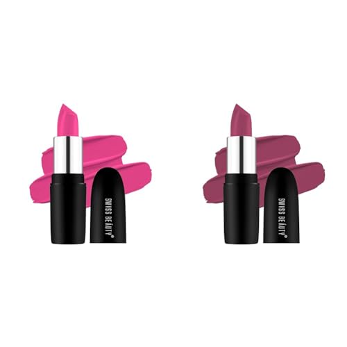 Swiss Beauty Pure Matte Lipstick | Long Lasting Hydrating & Lightweight Lipstick | Lush Pink 3.8gm|Swiss Beauty pure matte lipstick gives a matte finish on your lips. Exquisitely smoothing. It's like a colour infused fountain of youth for your lips. Instantly drenches lips in perfect locks it in for endless comfort. Infused with advance skin care ingredients the formula appeared in fine lines and helps lips look fuller.Swiss Beauty Pure Matte Lipstick | Long Lasting Hydrating & Lightweight Lipstick | Pink Blossom 3.8gm|Swiss beauty pure matte lipstick gives a matte finish on your lips. Exquisitely smoothing. It's like a colour infused fountain of youth for your lips. Instantly drenches lips in perfect locks it in for endless comfort. Infused with advance skin care ingredients the formula appeared in fine lines and helps lips look fuller.