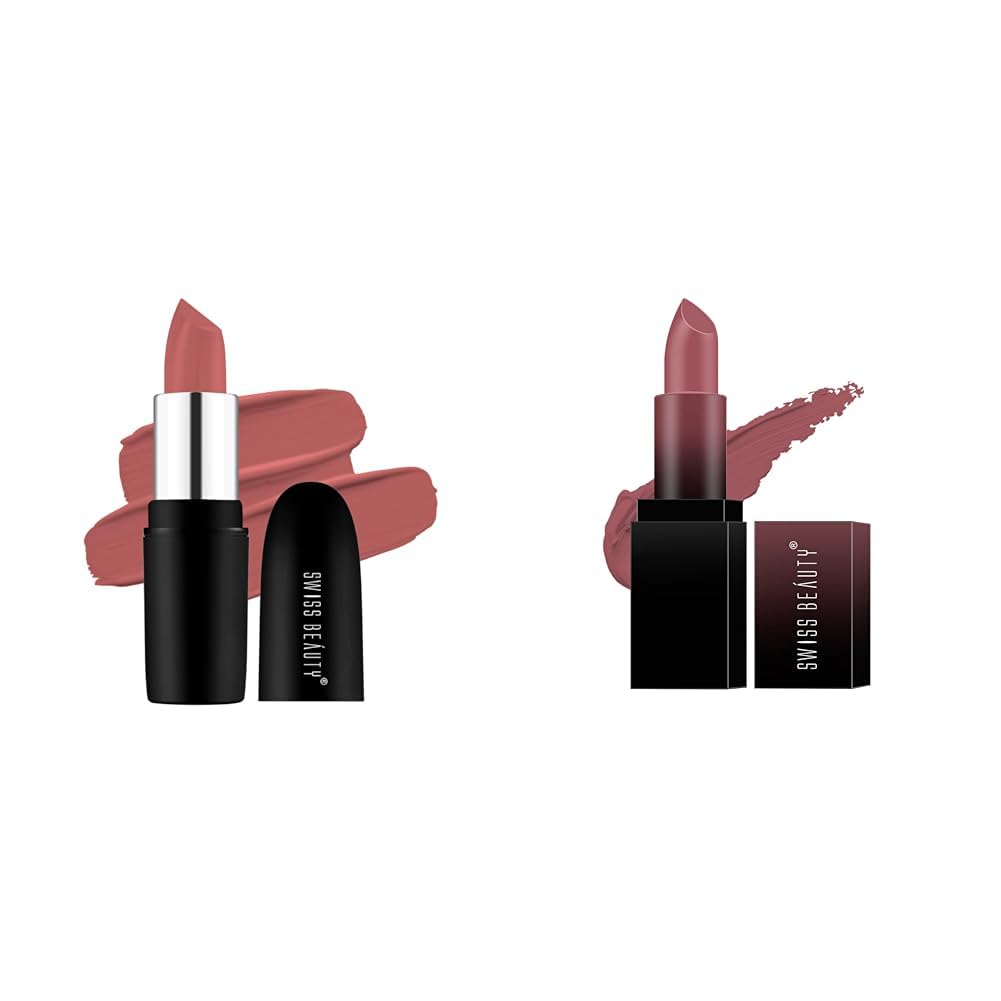 SWISS BEAUTY Pure Matte Lipstick | Long Lasting, Hydrating & Lightweight Lipstick | Bare, 3.8gm| & Pure Matte Lipstick | Long Lasting, Hydrating & Lightweight Lipstick | Bare, 3.8gm|