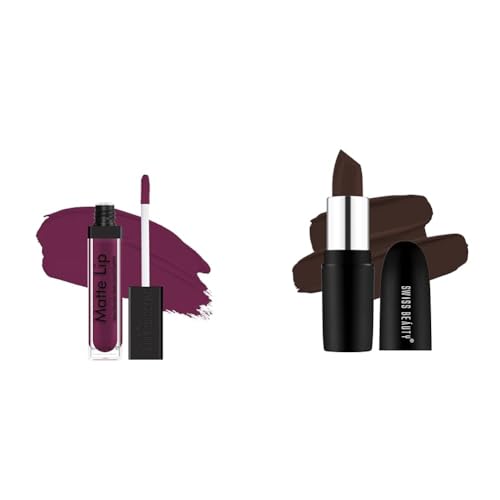 Swiss Beauty Ultra Smooth Matte Liquid Lipstick Smooth Lip Color Weightless Finish Silky Matte Finish Shade- Purple Villain 6mlThe iconic matte liquid lipstick with perfect pop of colour. Swiss Beauty Matte Lip weightless liquid lipstick comes with a velvety matte finish that lasts all day long. Get your hands on the unquestionably smooth lip color that stays true for up to 8 hours glides right on and gives that sophisticated silky matte finish that never feels dry and flaky.Swiss Beauty Pure Matte Lipstick Coffee 3.8gSwiss Beauty pure matte lipstick gives a matte finish on your lips. Highly pigmented colour that delivers rich matte effect. Easy to apply and long lasting. Make your lips look full and lush instantly. It so intensely pigmented that one swipe is enough. Its a got a smooth matte formula that sets within seconds of application.