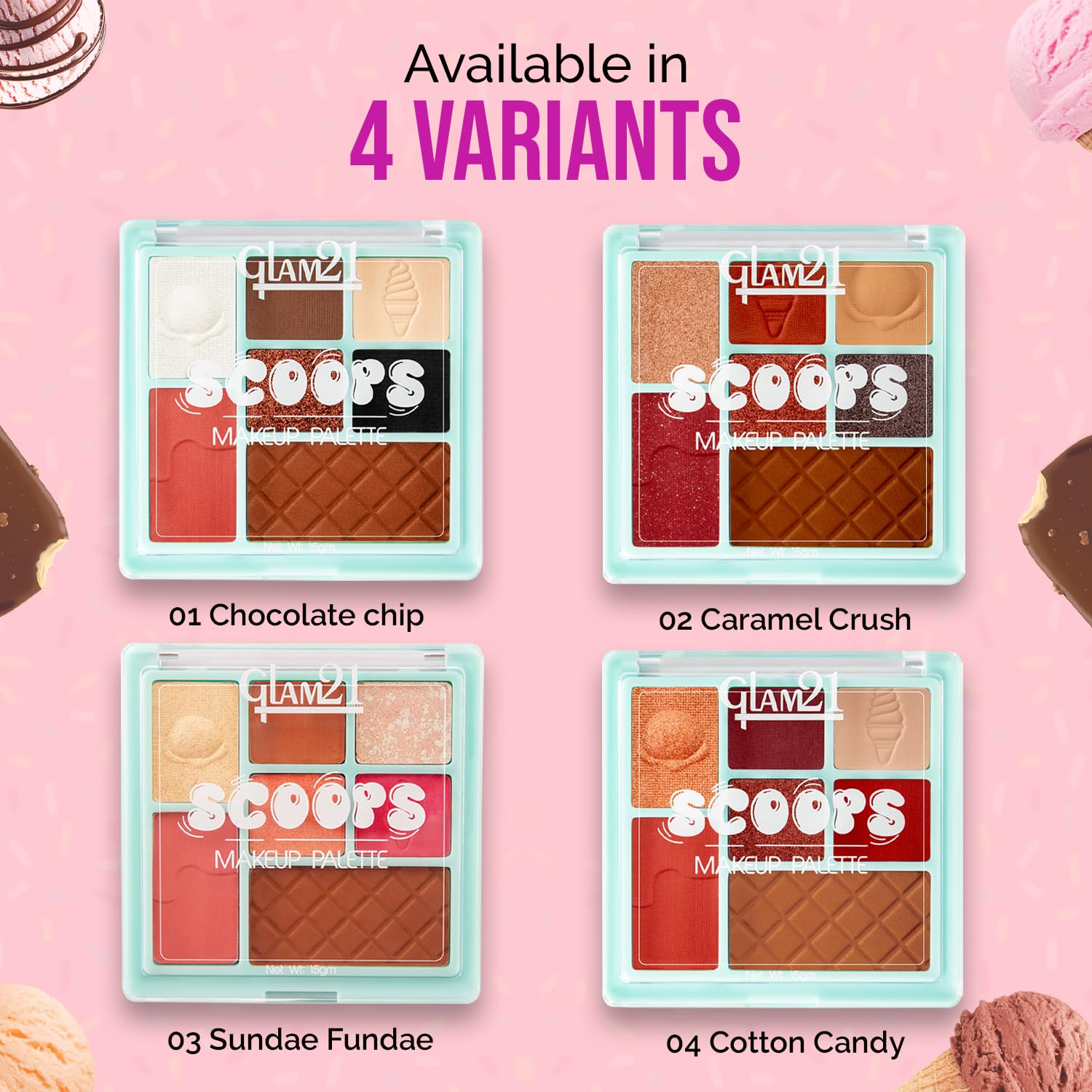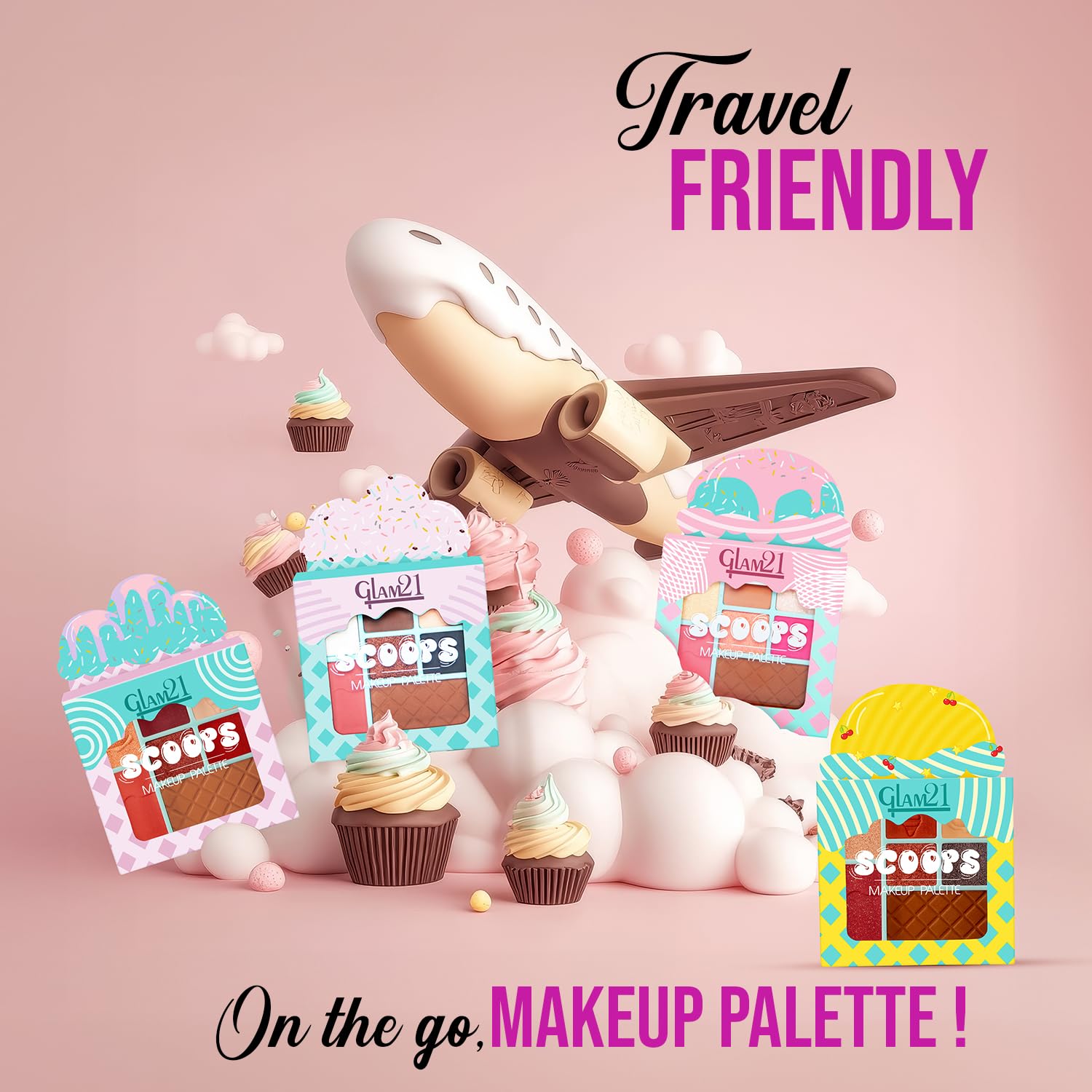 Glam21 Scoop Makeup Palette | Face Palette With Eyeshadow Blusher Contour and Highlighter | Mix of Mattes & Shimmers | Highly Pigmented | Travel Friendly | All in One Kit |Cotton Candy|15gm