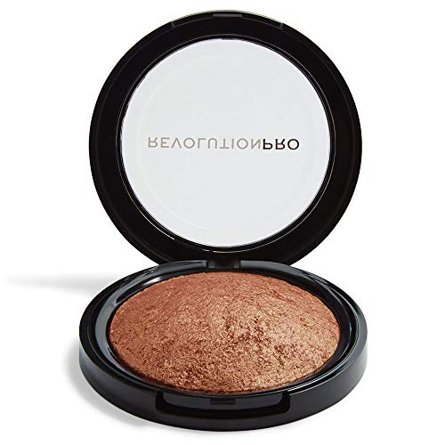 Illuminate your complexion with Revolution Pro skin finish. These mesmerising domed baked highlighting powders are formulated with ultra-fine shimmer that infuses skin with radiance. In six stunning shades they can be dusted onto the high points of the face and body or used all over for a lit-from-within effect. For a diffused finish apply with a fluffy powder brush or fan brush. To create a foil-like effect apply with a wet brush or mix with Revolution Pro mixing liquid.Golden glare â Copper shimmer with gold marbling.