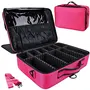 HomeBeautyMakeup KitsMakeup KitsTravel Professional Makeup Case Organizer Bag for Women | Portable Artist Storage Makeup Brush Bag with Adjustable Dividers, PINK, 18 INCH (2 LAYER), Travel Accessories
