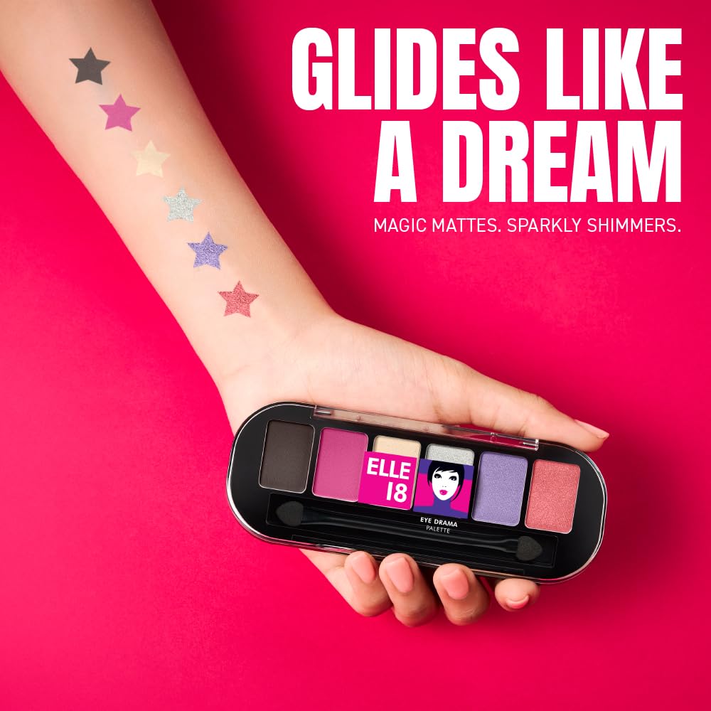 It's time to throw some shade and switch the drama on with the Elle 18 Eyedrama Eyeshadow Palette. These gorgeous eyeshadow shades are light like powder and glide like a dream. An absolute game changer that accentuates your whole look in a matter of seconds this Elle 18 Eyeshadow palette is an absolute must-have! With shades ranging from chic mattes to magical shimmers this 6 in 1 palette has got you covered bestie. No matter the look you've got to pull. Be it a Monday morning lecture or a brunch with your girls a post work party or an after-party with this little palette you are all set. Let's just say this palette is something you can rely on all day and all night and the different shades can easily match all your different moods and different kinds of vibe! If you think about it it's actually your little PALette. ?Now get that look by picking a shade to match your mood and get started. Using the eyeshadow brush apply the shade on the centre of your eyelid and dab it gently. Put on a shimmery shade along the lash line and outer corners to add some depth and drama! Amp up those gorgeous shadowed eyes with Elle 18 Eyedrama Kajal's beautiful bold strokes..