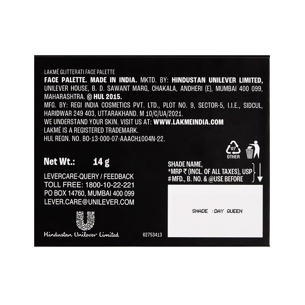 Get ready to steal the show with the Glitterati face palette! This isn't just your average palette it's a six in one powerhouse that's here to glam up your life. From those silky contours sculpting those cheekbones to the illuminating shades that give your features that flawless pop this palette has it all. The blush? Oh it's the secret to that perfect cheek flush while the shadows help tell a captivating story with your eyes. A palette so versatile that it carries your look from day to night even when you're on the go! Crafted to perfection so that every moment and occasions is a glamourous one. Its effortless to use and easy to blend with the most intense colour payoff so you can say goodbye to the clutter of a make up bag! Available in two shades Day Queen and Night Diva suitable for all skin types the Glitterati face palette lets you unleash the glamour and set trends wherever you go. This Glitterati face palette is the ultimate beauty powerhouse! It's not just a palette; it's a six in one beauty genie that transforms every look into pure glamour. Get ready to step into the spotlight and own every moment with this ultimate beauty game changer.
