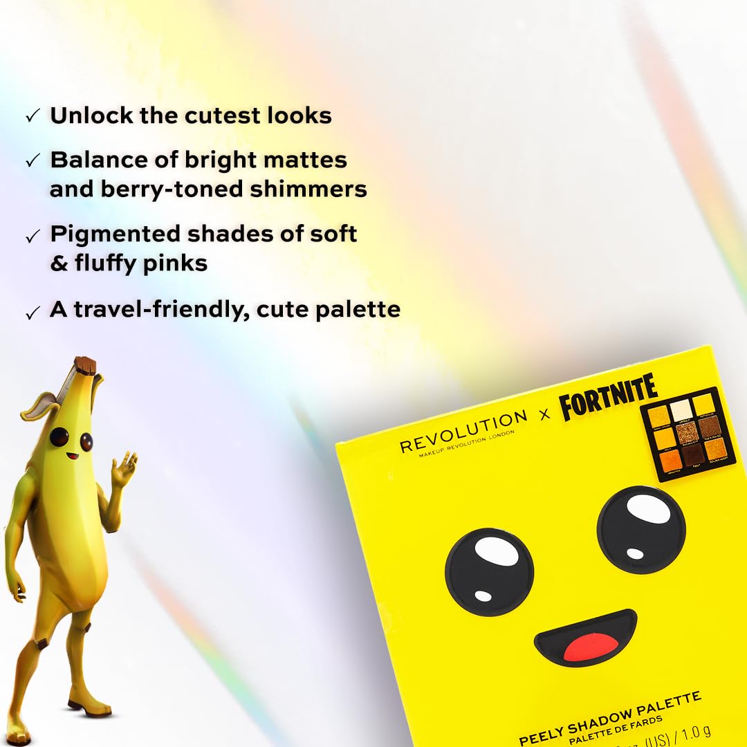 Makeup Revolution X Fortnite 9 Pan Shadow Palette Peely | Unpeel high impact looks |Pops of Peely's signature yellow |Featuring smokey shimmers & cream mattes |A travel friendly cute palette | 9gm