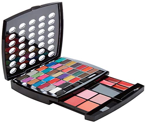 A make-up palette that multitasks just like you do! This sleek and small makeup kit features 35 eye shadow shadows 4 blushers and 4 lip glosses and enclosed applicators - perfect for on-the-go glam touch ups.