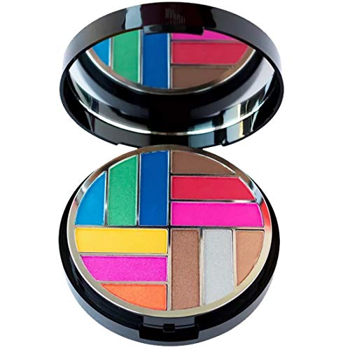 Miss Claire Make up palette that multitasks just like you do! This sleek and small makeup kit features 12 eyeshadows 2 blushers 1 compact powder 2 lip glosses and enclosed applicators; perfect for on-the-go glam touch ups.