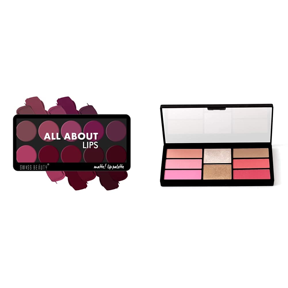Swiss Beauty All about Lip Palette with 10 Pigmented colors |Creamy Matte Finish Lip Colors Lipstick |Travel Friendly Lip Palette | Multicolor -01 12 gm |The product comes in safe package. The product will be an excellent pick for you.Swiss Beauty Pro Blusher & Highlighter Palette for Face makeup | Shade-04 18gSwiss Beauty brings you blush & highlight palette. A fine way to achieve flawless makeup and look beautiful. Blush & highlight palette is the most stunning collection of blush and highlighter Shades to complement any makeup artist. -Wear these palettes with pride and confidence as it makes you look gorgeous. -Soft powder sits on your skin comfortably without giving heavy feel and gives natural finish. -It is a must have in your makeup kit which is easy to apply.