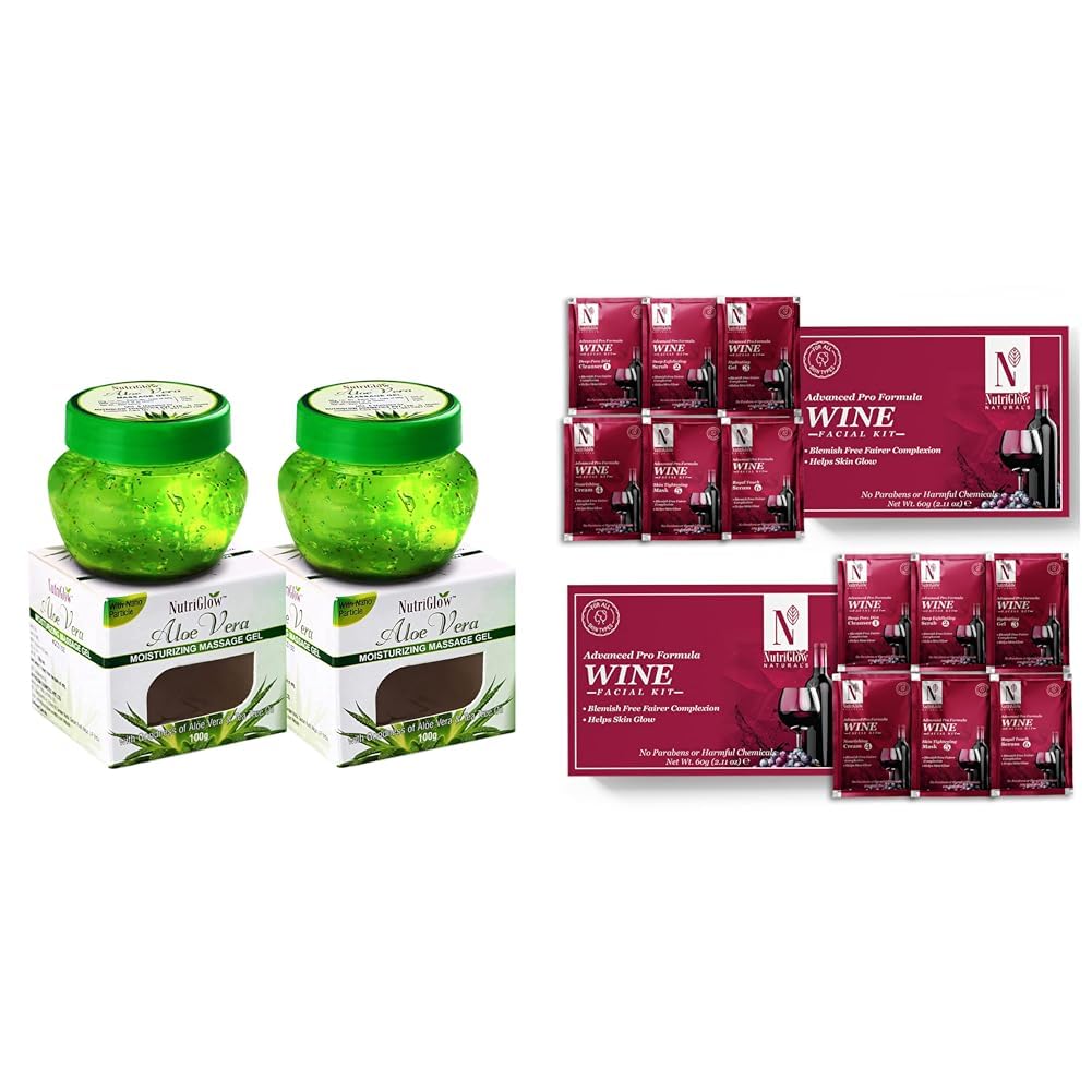 HomeBeautyMakeup RemoverMakeup CleanserNutriGlowAloe Vera Gel Great for Face Hair 100gm Each Pack of 2NATURAL'S Advanced Pro Formula Wine Facial Cleanup Kit 60 gm (Pack of 2)