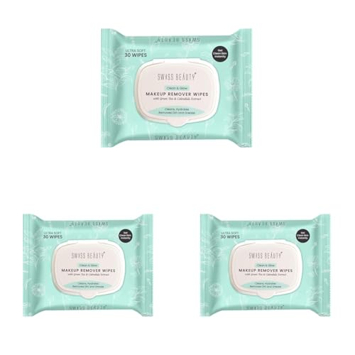 Swiss Beauty Clean & Glow Makeup Remover Wipes | With Green Tea And Calendula Extracts| Cleansing And Hydrating Facial Wipes| 30 Wipes (Pack of 3)
