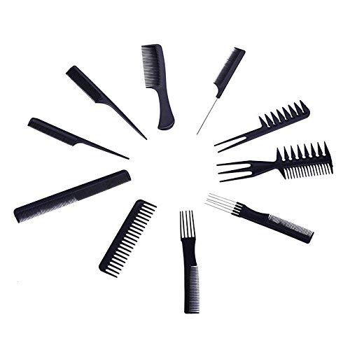 All the basic styling tools you need! 10 different combs in all.These combs can be used after the shower bath or on dry hair. In fact they're great for head hair and even brushing out your beard. Lightweight and discrete this unisex hair comb set from durable plastic can be put in the car a briefcase your desk at work or even your bathroom.Each of our combs is designed with straight durable teeth of different sizes and densities to avoid pulling tangling or damaging hair.The combs are anti-static and have specially designed rounded tips that don't hurt your scalp. These combs are made with a high-grade polymer material.