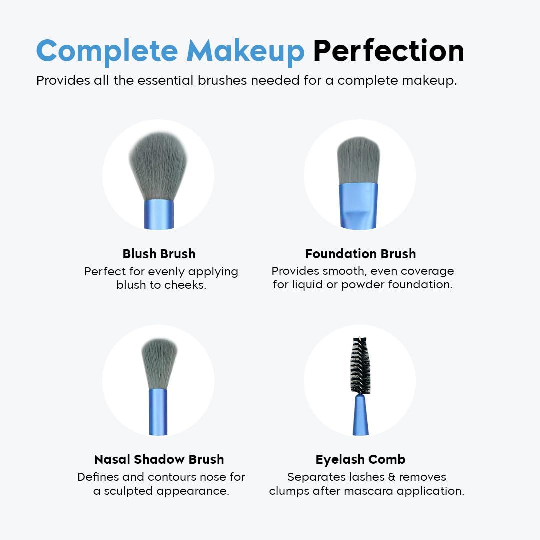 Portable and Convenient Designed to fit perfectly in your daily bags this essential makeup brush kit is easy to carry. The cosmetic bag features buttons and a mini size making it ideal for travel or when you're on the go.
