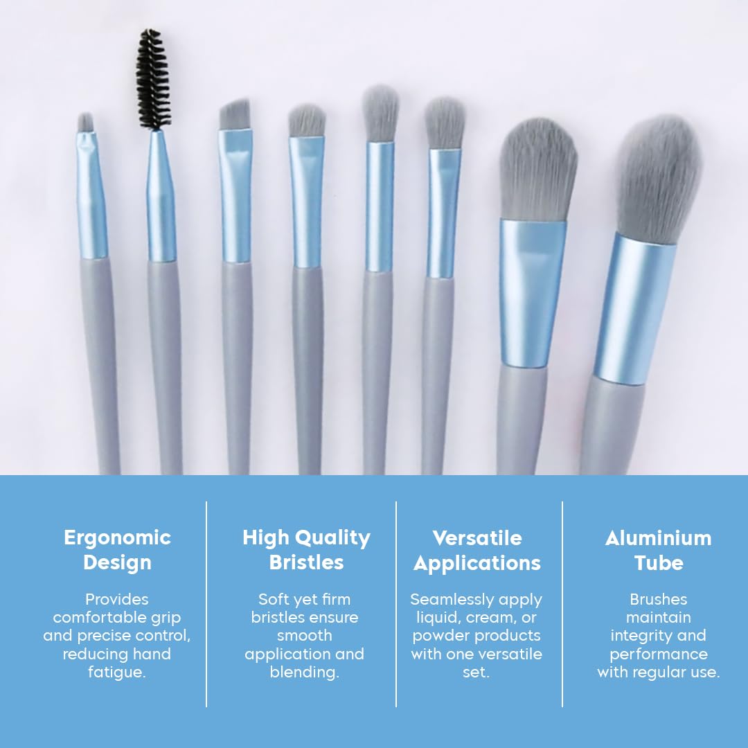 Soft Makeup Brushes Crafted with high quality synthetic fibre hair these brushes are dense smooth to the touch and gentle on the skin. They provide excellent powder application minimizing hair shedding and skin irritation. These professional makeup brushe