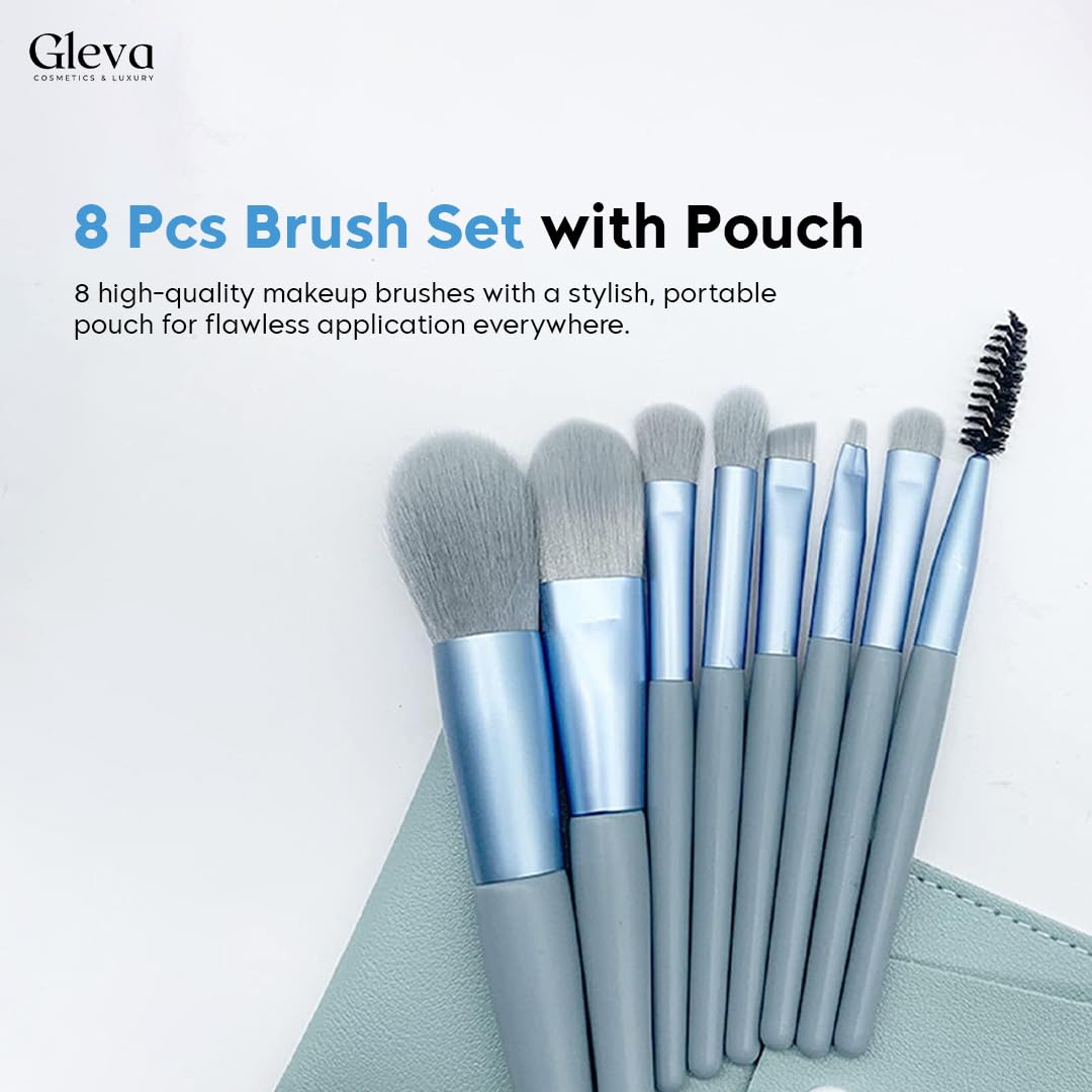 Gleva 8 Pcs Brush Set With Pouch Makeup Brushes Premium Synthetic Kabuki Foundation Concealers Eye Shadows Professional Blush Face Powder Highlighter Contour Blending Eyeliner (Pink)