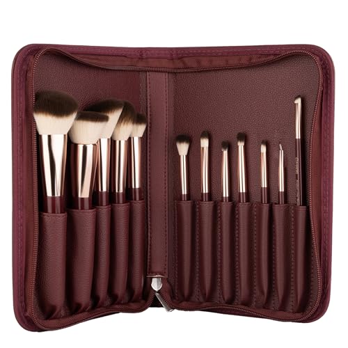 MARS Professional Makeup Brush Set of 12 | Long-Lasting | Soft & Synthetic Bristles | Easy-to-Hold & Precise Application for Face, Eyes & Brows (Maroon)