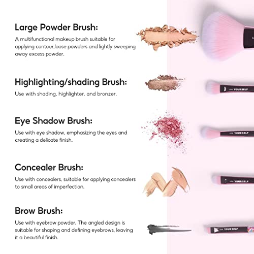 • 5-piece makeup brush set allows you to achieve a gorgeous full-faced look on your face cheeks and eyes with luxurious professional results