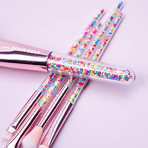 MINISO Makeup Brushes Set Rainbow Series with Powder Brush Highlighting/Shading Brush Eye Shadow Brush Concealer Brush and Brow Brush - 5PCS Multicolor