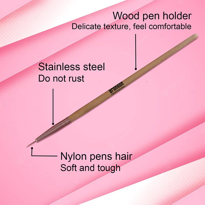 Doing UV gel nail nail extension nail polish and nail painting etc. Perfect brush for precision in sculpting and detailed acrylic nail art. Suitable for home use and professional nail salons. Gel Liner Striping Brush: Comes in 3 lengths â short medium and long for gingham stripes tartan plaids and any nail art design that requires heavy horizontal vertical and diagonal line creation. HIGHLY VERSATILE: A perfect tool for swirling and blending effects filling in colours drawing small details thanks to its pointy tips. This nail art brush set can also be used for rock painting fine art painting and 3D model painting. PRECISION: Each brush is precisely trimmed weighed and shaped by our professional team. This ensures the sturdiest and most amazing nail brush performance. Premium Quality Bristles: Durable nylon hair works with nail polish acrylic paint and gel nail polish Premium Body: Strong wooden handles tolerates alcohol acetone and nail polish remover; silver ferrules are double clamped to prevent hair shedding.