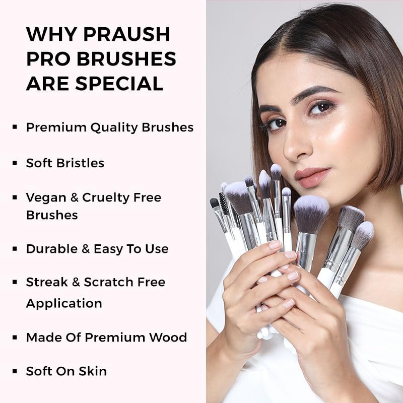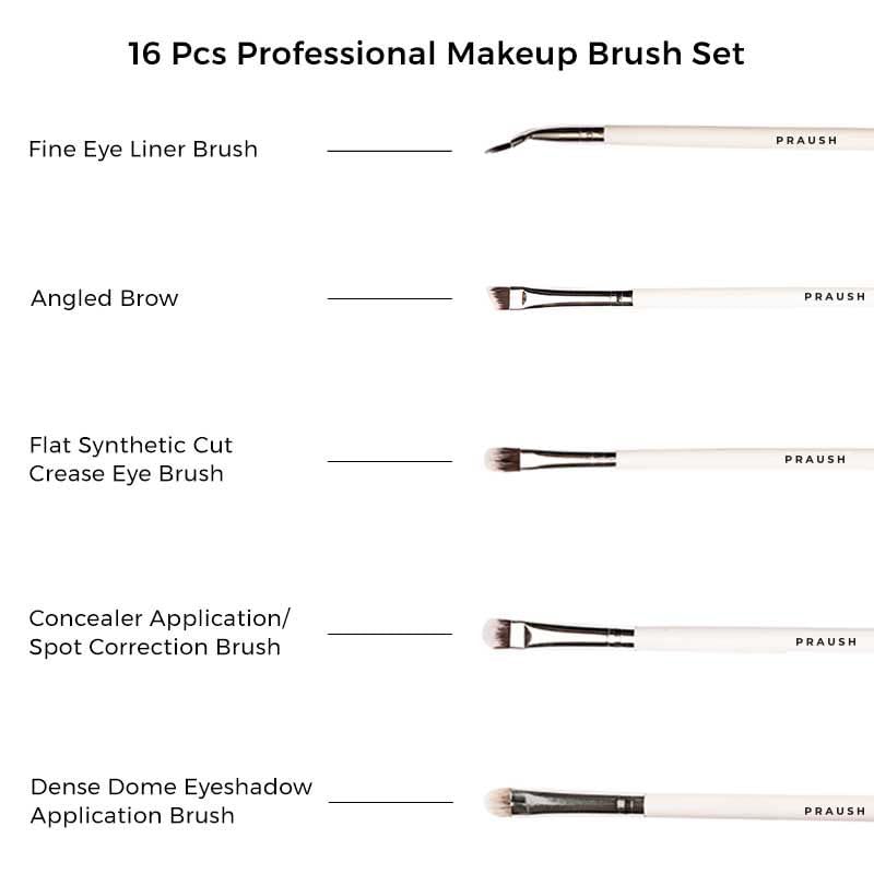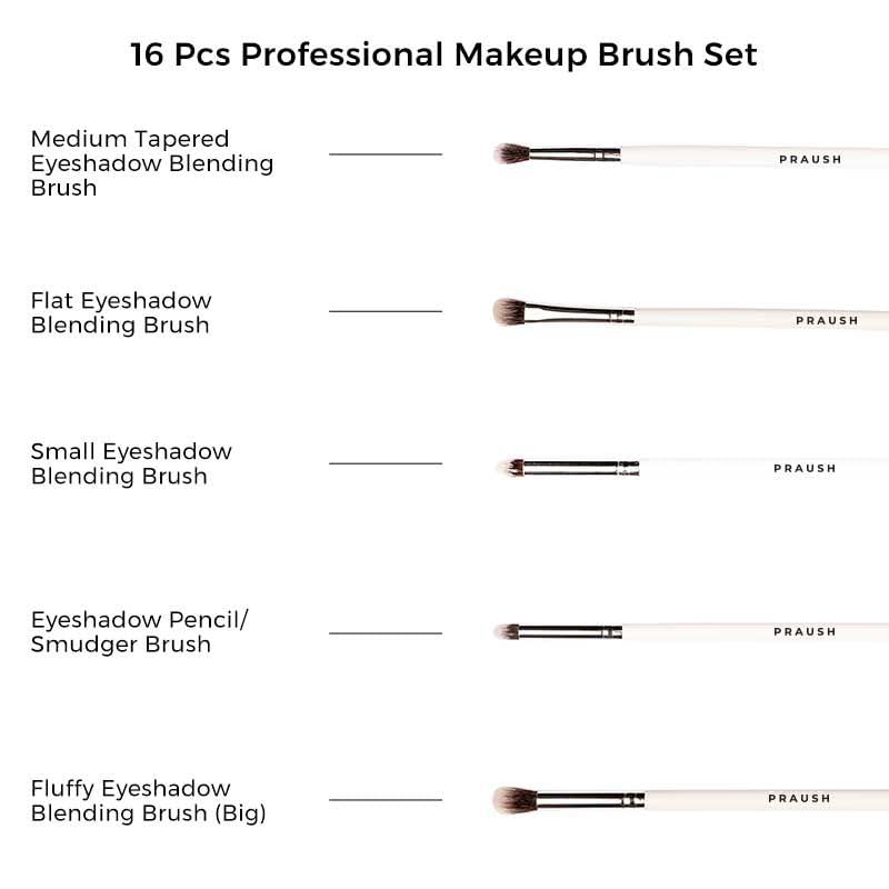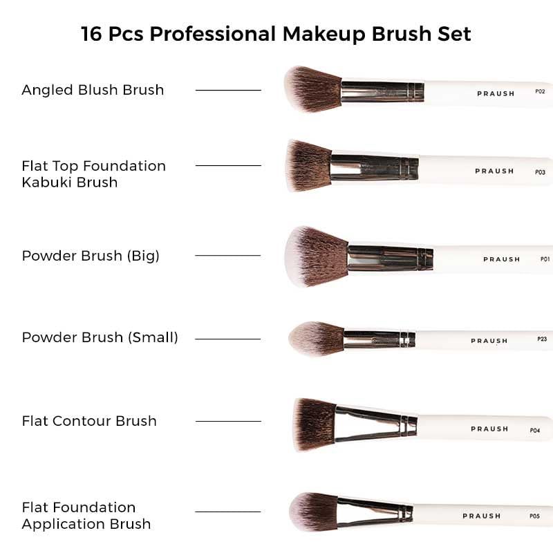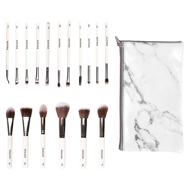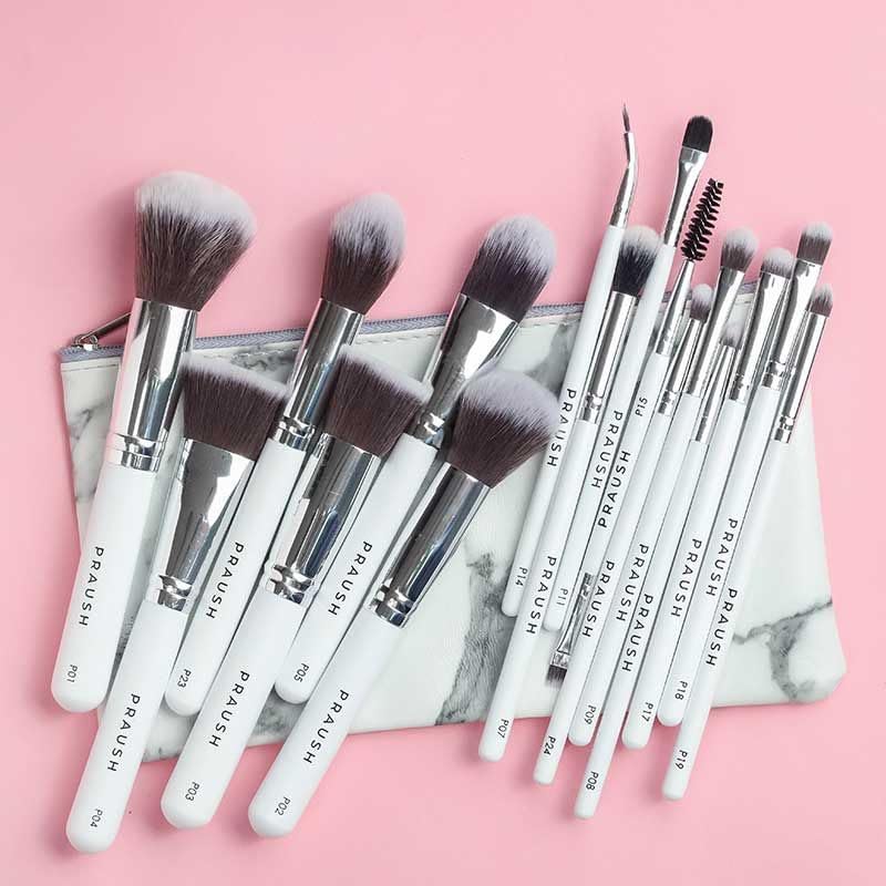 Praush professional brush set is your perfect partner in achieving those stunning looks. Crafted with utmost precision & high quality bristles Praush professional makeup brushes are the best choice of every makeup enthusiast. Our 16 Pieces Professional Makeup Brush Set consists of 6 Face Brushes and 10 Eye Makeup Brushes with a gorgeous Marble design Makeup Bag.