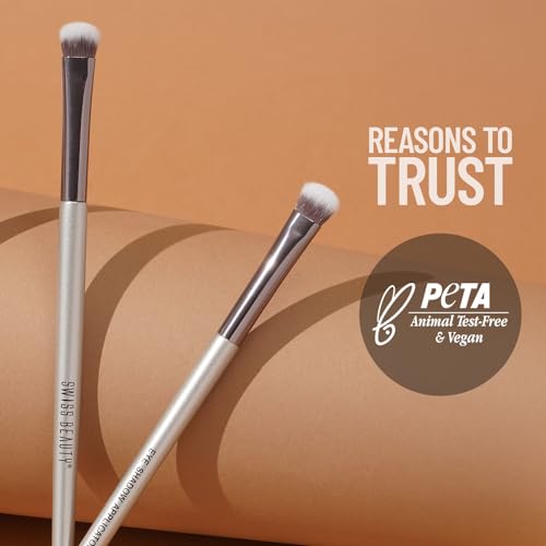 Swiss Beauty combines high-tech materials with innovative design brush to make creating a pixel-perfect look easier than ever synthetic bristles are ultra-plush and smoother than the hair you'll find in other brushes. It creates flawless base enhanced look and the perfect finish like a pro. Each brush head is perfect shape allowing for precise application from dense coverage to a soft delicate finish. The collection is suitable for a wide range of products and every makeup need from powders creams and liquids to mineral makeup highlighter and shimmer. Brush names on the handles make for easy reference when creating your favourite look.F05: Eyeshadow Applicotor Brush: The brush that'll make your eyes pop. Expertly crafted for applying eyeshodowon your eyelids this flat brush provides great pick up and splendid outcome. The colour transfers on the lids efficiently without any falls.