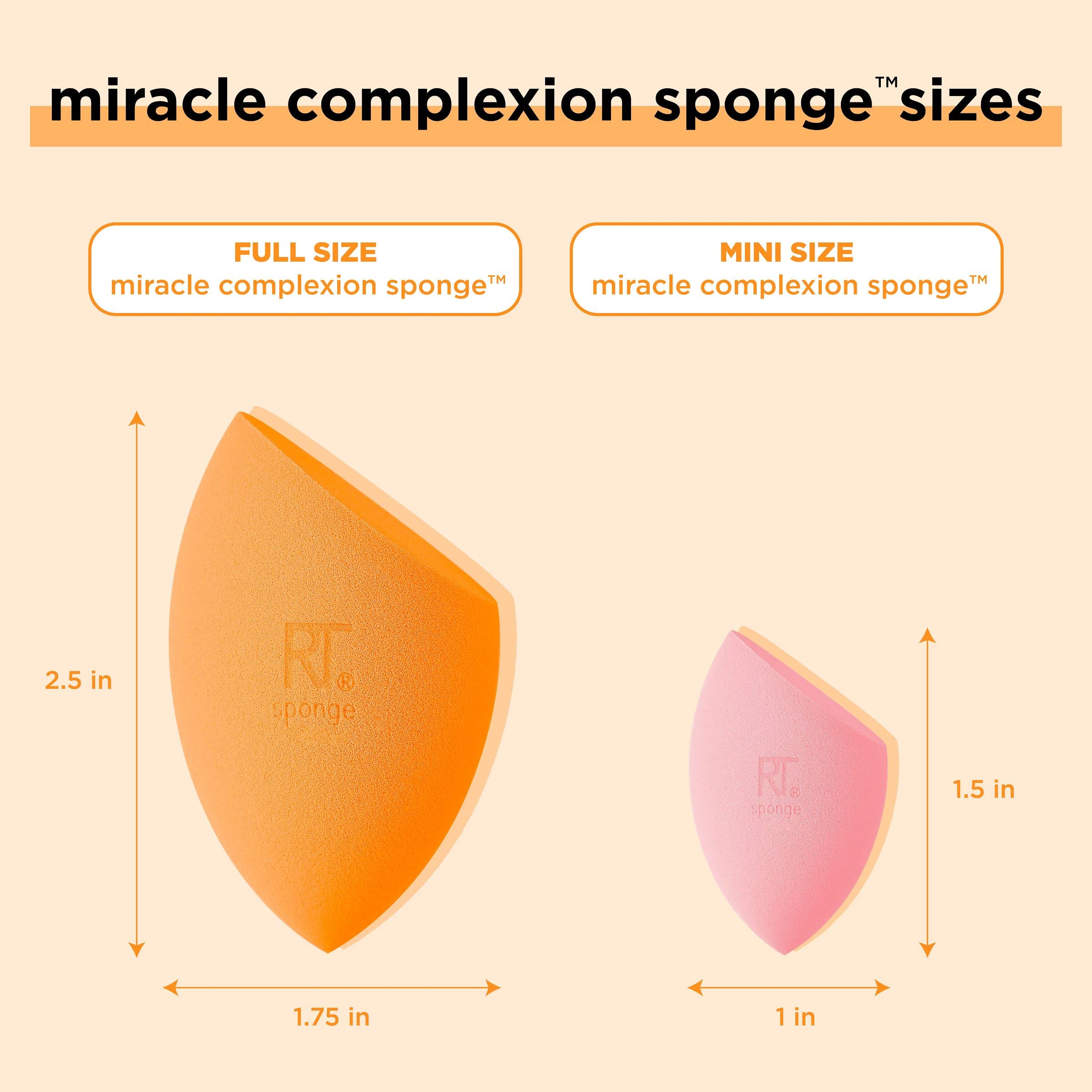 These 3-in-1 multifunctional mini miracle complexion sponges leave skin with a smooth and natural-looking finish; the mini size is perfect for travel or on-the-go touch-ups; tip: you can use them damp for a dewy glow or dry for a full coverage application