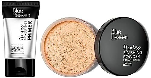 Blue Heaven Studio Perfection Primer Clear 30gA lightweight Formula with silicones and vitamins to soften Soothe and mattify your skin. Makeup Glides on and Stays Fresh For Hours. It Enhances the adherence to Make-Ups while used under Foundation Or Compact Powders. It Can also be used as base for eyeshadows and Blush Ons.Blue Heaven Saphire Make Up Translucent Powder - Natural Natural 20 gBlue Heaven saphire translucent face powder beauty secret & photo focus. Blue Heaven saphire translucent face powder glides over your skin for a translucent veil that keeps cosmetic intact all day long & feels feather soft.