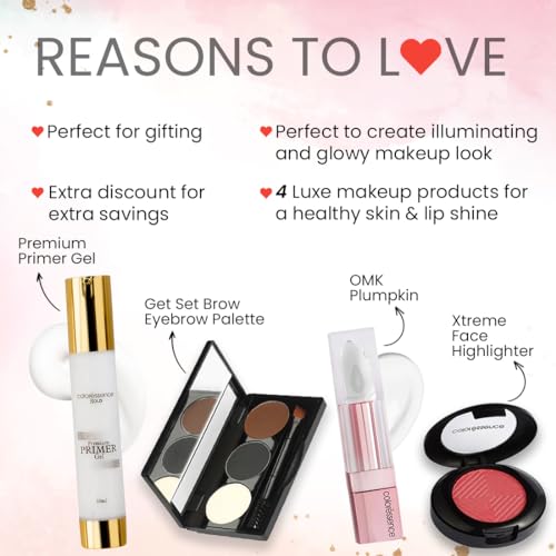 The Prive Pack by Coloressence comprises 4 exclusive makeup products that are not-so-basic. You get a Premium Primer Gel which enables a glowy skin prep Xtreme face highlighter that helps to get the ultimate sheen Plumpkin lip gloss in the shade Ice Cube for ultimate glossy lips and the Get Set Brow palette which is the ultimate brow enhancer.