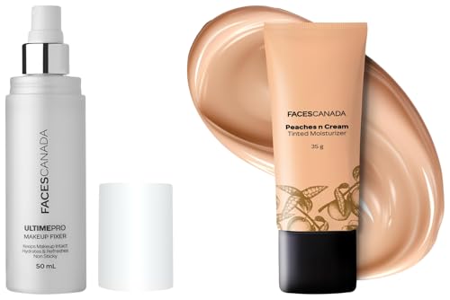 FACESCANADA Ultime Pro Natural Finish Makeup Fixer 50 Ml And Faces Canada Peaches N Cream Tinted Moisturizer - Light 01, 35 G