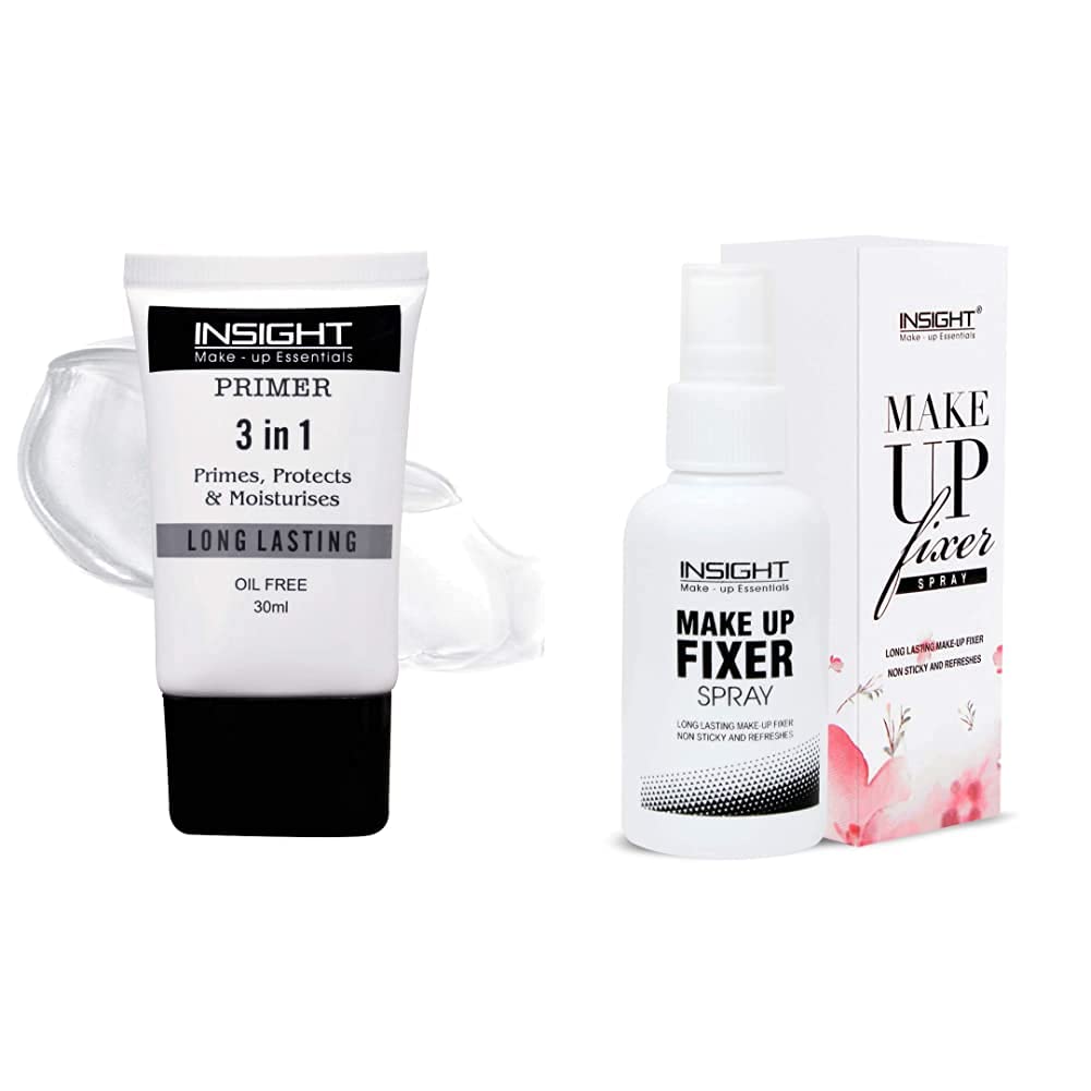 INSIGHT Primer | 3 In 1 Oil Free (PRIMER) & INSIGHT Makeup Fixer Spray 75ml, Transparent, 1 count