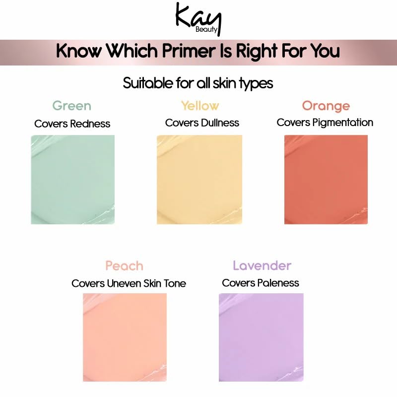 Prep your face for flawless makeup application with the Kay Beauty Color Correcting Primer range. These 100% Silicone Free primers help you conceal specific skin concerns like redness dullness unwanted pigmentation or dark circles. The water-based no-shine formula lends your skin a boost of hydration without making it feel greasy.