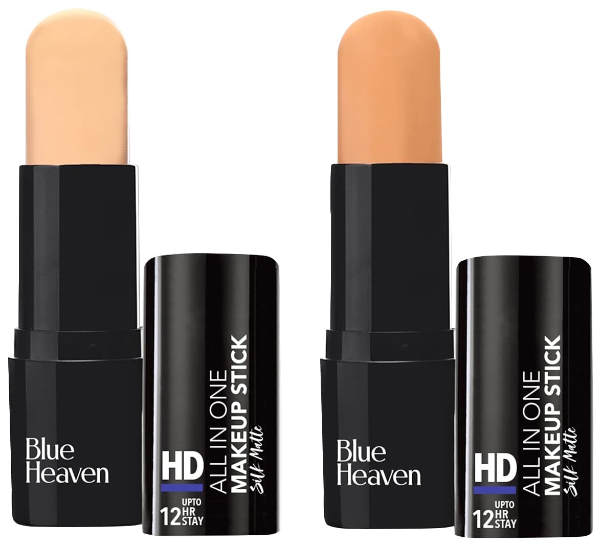 Blue Heaven HD All In One Makeup Stick Natural Finish Honey 10gBlue Heaven HD All-in-One Makeup Stick is the ultimate multi-utility makeup solution. Use it as a foundation to get the perfect base concealer to blur imperfections colour correct to correct undertones and contour to highlight your favourite features. Available in 6 shades to match every Indian skin-tone. Easy to carry and easy on the pocket tooBlue Heaven HD All In One Makeup Stick Silk Matte - 101 Vanilla-Very Fair 10gmBlue Heaven HD All-in-One Makeup Stick is the ultimate multi-utility makeup solution. Use it as a foundation to get the perfect base concealer to blur imperfections colour correct to correct undertones and contour to highlight your favourite features. Available in 6 shades to match every Indian skin-tone. Easy to carry and easy on the pocket too.