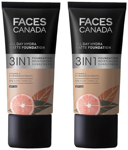 • 3 IN 1: FACESCANADA All Day Hydra Matte Foundation is a multi-benefit foundation + moisturizer + sunscreen. The benefits of a medium to high-coverage foundation a broad UV spectrum of SPF 30 and the goodness of a moisturizer are all packed in one product.