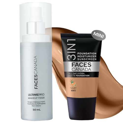 FACES CANADA Waterproof Fix & Finish Kit | Makeup Fixer (50ml) + Warm Sand All Day Hydra Matte Mini Foundation (18ml) | Makeup Kit For Women (Combo Pack of 2)