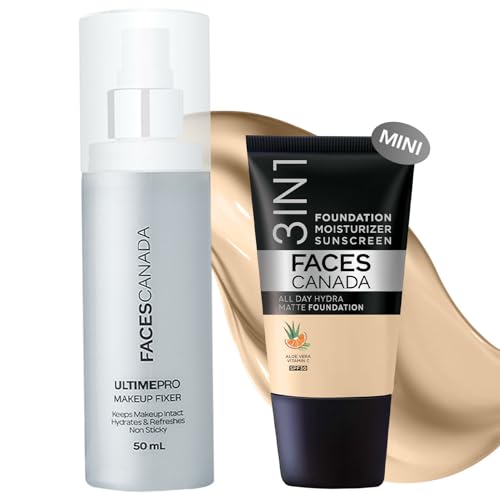 FACES CANADA Waterproof Fix & Finish Kit | Makeup Fixer (50ml) + Absolute Ivory All Day Hydra Matte Mini Foundation (18ml) | Makeup Kit For Women (Combo Pack of 2)