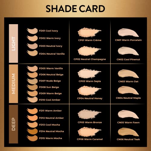 Get a luminous spotlight-worthy base with this foundation from the Manish Malhotra Skin Awakening Range. Non-irritating soft-focus long-wear formula comes with medium-to-high coverage for an all-occasion-ready even-toned complexion. Enhanced with Vitamin C enriched Italian Red Orange Extracts to protect skin from free radical damage thus minimising signs of ageing. This liquid foundation is formulated with glow-igniting gold for instant radiance. Available in 15 shades to flatter all Indian skin tones. So #AceYourBase and be ready to get showered with compliments everywhere you go!